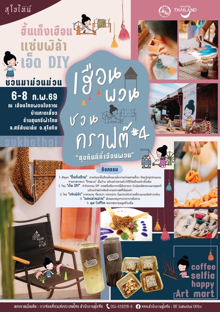 [สุโขทัย] – การท่องเที่ยวแห่งประเทศไทย (ททท.) สำนักงานสุโขทัย จับมือพันธมิตรภาครัฐและเอกชน เดินหน้าตอกย้ำภาพลักษณ์ “สุโขทัย เมืองสร้างสรรค์ UNESCO” เตรียมจัดงาน “เฮือนพวน ชวนคราฟต์ ครั้งที่ 4” ระหว่างวันที่ 6 – 8 กุมภาพันธ์นี้ ณ ร้านสุนทรีผ้าไทย อำเภอศรีสัชนาลัย มุ่งนำเสนองานหัตถศิลป์และวิถีชีวิตชาวไทยพวนผ่านแนวคิด Green Tourism หวังกระตุ้นเศรษฐกิจฐานรากรับลมหนาว