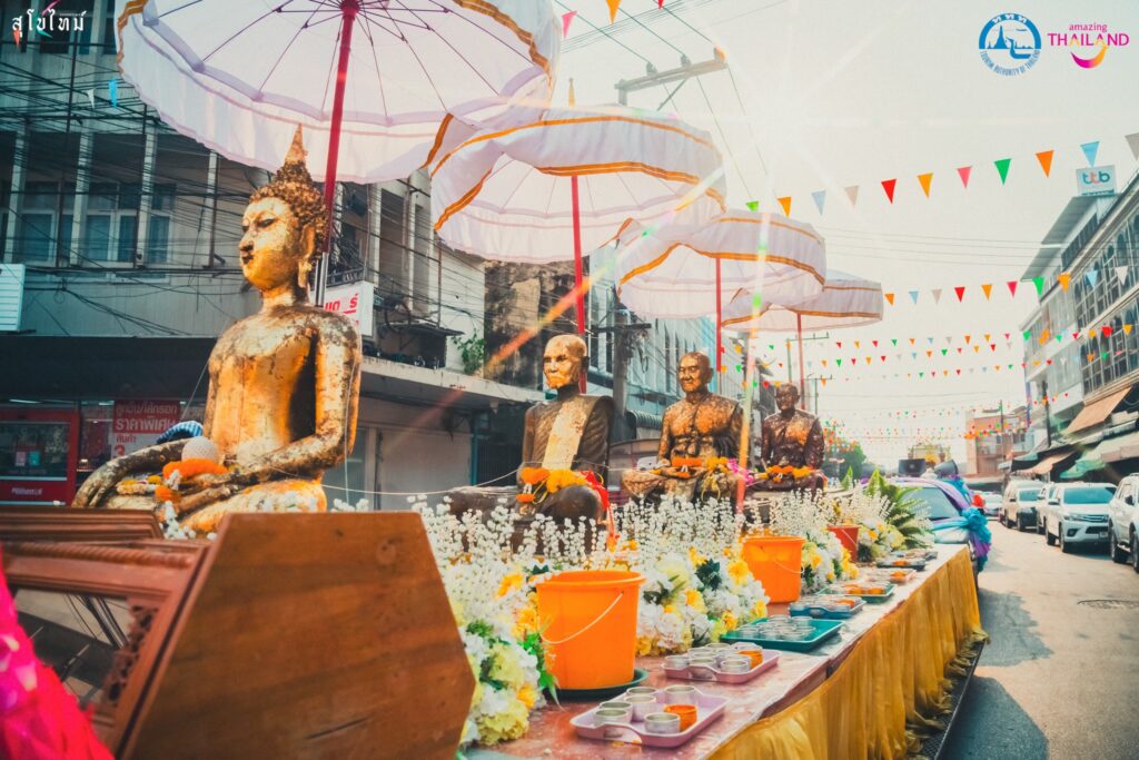 [สุโขทัย – ๑๓ เมษายน ๒๕๖๙] – การท่องเที่ยวแห่งประเทศไทย (ททท.) สำนักงานสุโขทัย ร่วมกับ เทศบาลเมืองสุโขทัยธานี และพี่น้อง ๑๒ ชุมชน เปิดฉากงานเทศกาล “สงกรานต์เสื้อลายดอก ถนนข้าวตอกสุโขทัย” ประจำปี ๒๕๖๙ อย่างยิ่งใหญ่ ชูไฮไลต์ขบวนพาเหรดสุดวิจิตรตระการตาที่ผสานพลังศรัทธาและความสร้างสรรค์ของคนท้องถิ่น มุ่งยกระดับด้านประเพณีไทยสู่สายตานักท่องเที่ยวทั่วโลก