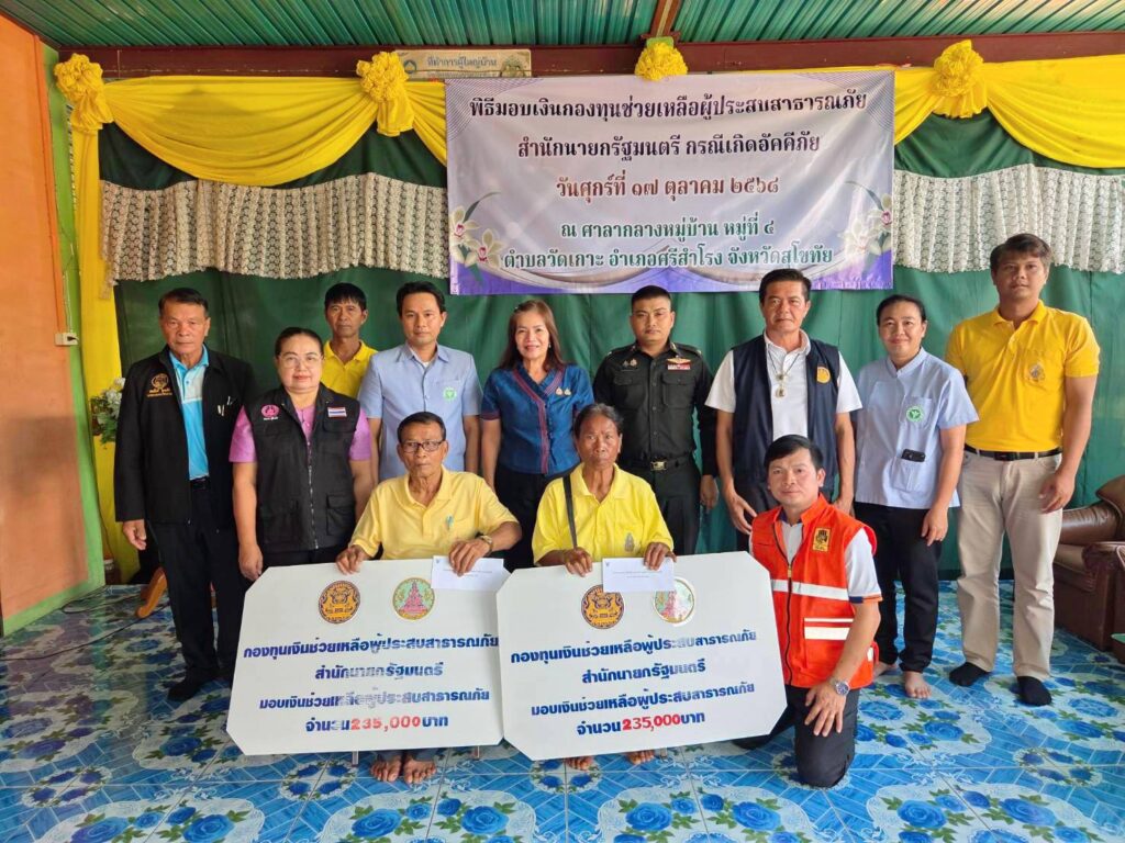 จังหวัดสุโขทัยมอบเงินกองทุนช่วยเหลือผู้ประสบอัคคีภัย เยียวยาครอบครัวได้รับความเดือดร้อนรวม 470,000 บาท