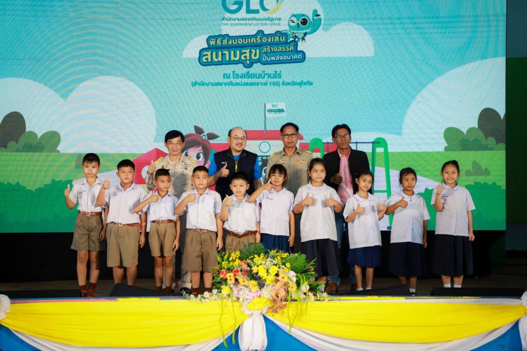 วันที่ 22 กันยายน 2568 เวลา 09.00 น. ที่โรงเรียนบ้านไร่ (สำนักงานสลากกินแบ่งสงเคราะห์ 155) จังหวัดสุโขทัย สำนักงานสลากกินแบ่งรัฐบาลจัดพิธีส่งมอบเครื่องเล่นสนามตามโครงการสนับสนุนโรงเรียนสลากกินแบ่งสงเคราะห์ ประจำปี 2568 ภายใต้แนวคิด “สนามสุขสร้างสรรค์ ปั้นพลังอนาคต” โดยนายทวีป วุฒิบาทุกาจิตต์ รองผู้อำนวยการสำนักงานสลากกินแบ่งรัฐบาล เป็นผู้แทนส่งมอบให้แก่กลุ่มโรงเรียนสลากกินแบ่งสงเคราะห์ในเขตภาคเหนือ จำนวน 17 แห่ง