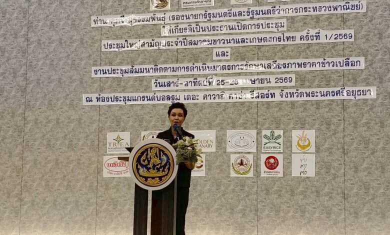 (เมื่อวันที่ 26 เมษายน 2569 – พระนครศรีอยุธยา) นางศุภจี สุธรรมพันธุ์ รองนายกรัฐมนตรี และรัฐมนตรีว่าการกระทรวงพาณิชย์ ลงพื้นที่พบปะคณะกรรมการสมาคมชาวนาและเกษตรกรไทยจาก 58 จังหวัดทั่วประเทศ ย้ำแนวทาง “พาณิชย์เชิงรุก” บูรณาการร่วมกระทรวงเกษตรฯ แก้ปัญหาข้าวครบวงจรตั้งแต่การผลิตจนถึงการตลาดระดับสากล ยุทธศาสตร์ 3 ระยะเพื่อชาวนาไทย ประกอบด้วย
